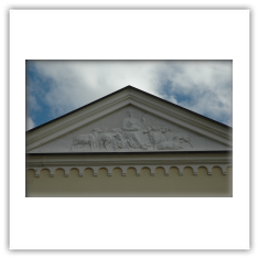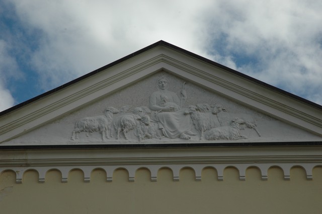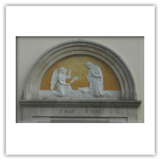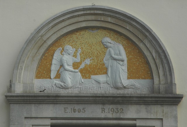 La porta è sormontata da una lunetta che raffigura la